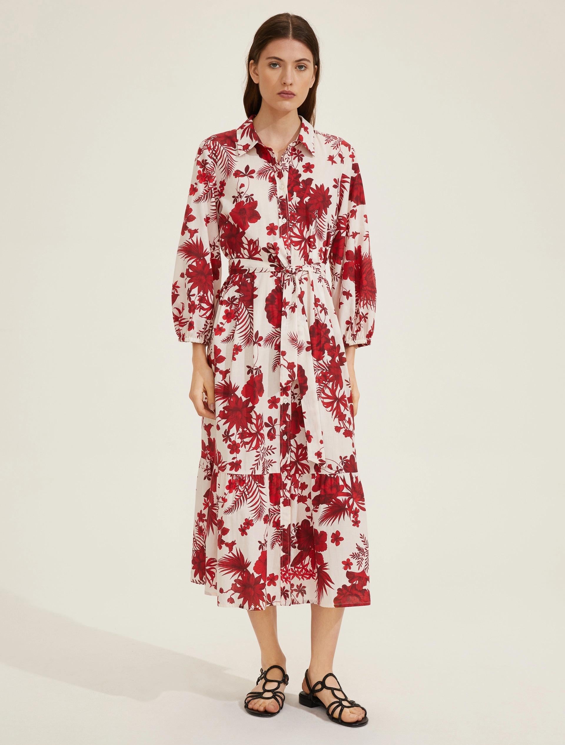 Abito chemisier in mussola di cotone con stampa